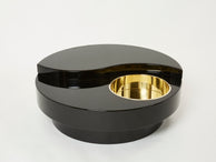Willy Rizzo black lacquer brass bar swivel coffee table TRG 1970s