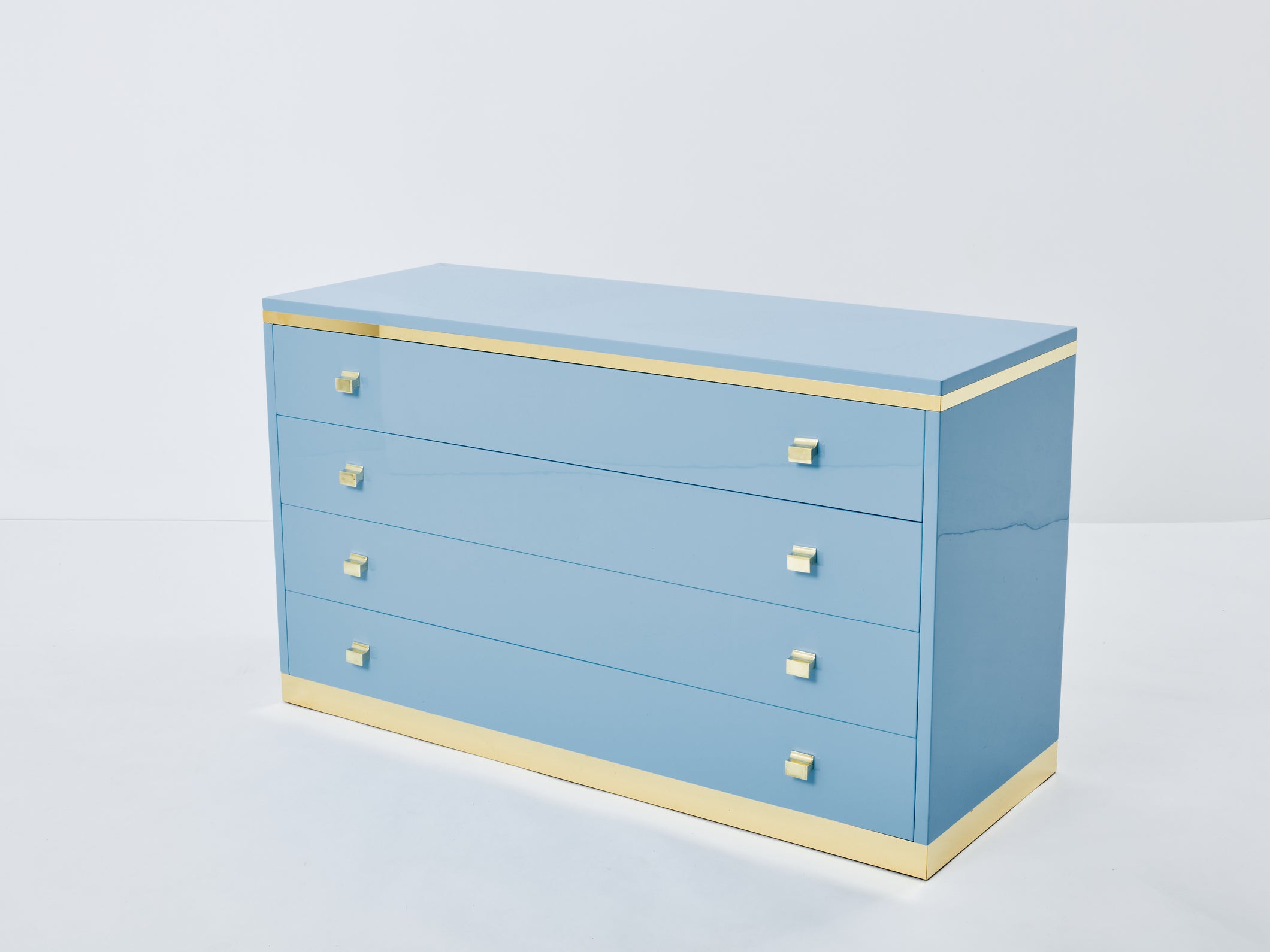 Willy Rizzo light blue lacquered and brass commode 1970s