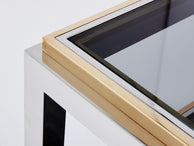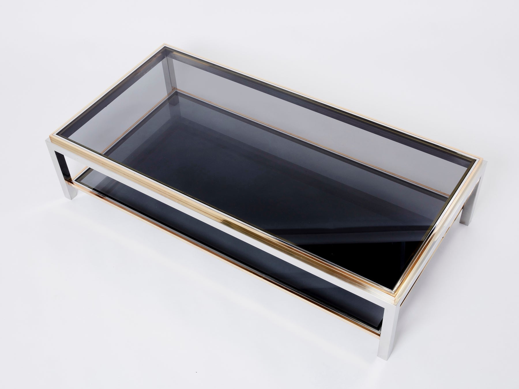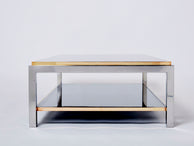 Willy Rizzo Two-Tier brass chrome smoked glass coffee table Flaminia 1970s